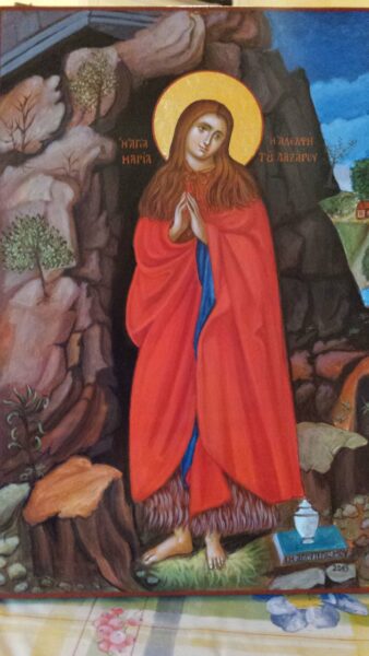 Η Αγία Μαρία υπήρξε η μικρότερη αδελφή της Αγίας Μάρθας και του Αγίου Λαζάρου. Έτρεφε μεγάλο σεβασμό και έδειχνε ευλάβεια στο Χριστό μας. Καθόταν παρά τους πόδας Του και άκουγε προσεκτικά τη διδασκαλία Του, έχοντας διαλέξει την «αγαθή μερίδα» (Λουκ. ι’, 38-42).