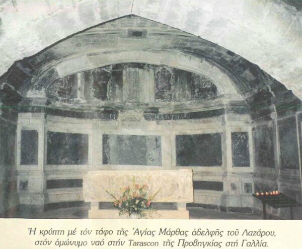 Η Αγία Μάρθα, η μεγαλυτέρα αδελφή του Αγίου Λαζάρου, ήταν οικοδέσποινα από τη Βηθανία πού με περισσή φροντίδα φιλοξενούσε τον Κύριο και τους μαθητές Του όταν επεσκέπτοντο την πόλη της.